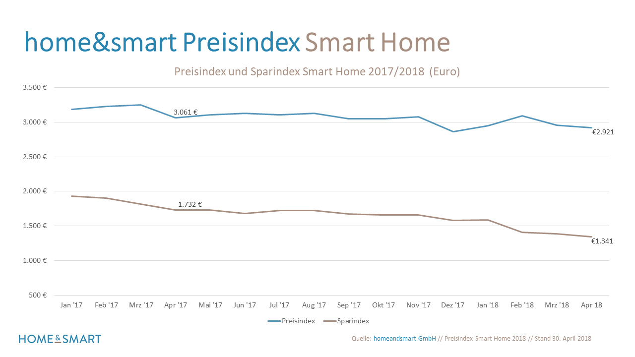 home&smart Preisindex: Intelligenter Haushalt im April günstiger zu haben als im Vormonat