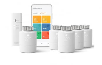 Dieses Starter Set bietet ebenso wie das vorherige 5 Thermostate und eignet sich somit direkt für die Aufrüstung einer ganzen Wohnung. Außerdem ist in diesem Set noch ein tado° Funk-Temperatursensor inkludiert, der eine genauere Messung der Raumtemperatur erlaubt.