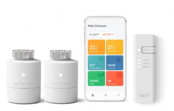 Wer noch keine tado° Heizkörper-Thermostate besitzt, kann sich zunächst mit dem Starter Kit V3+ ein Bild von der praktischen Technologie machen und das Ganze austesten. In dem Starter Set ist neben einem tado° Heizkörperthermostat auch noch die zugehörige Bridge als Steuerzentrale enthalten, die für die Nutzung notwendig ist. Dadurch lässt sich das Thermostat direkt installieren, einlernen und nutzen.